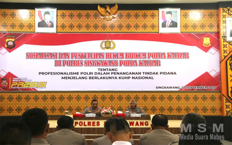 MediaSuaraMabes, Singkawang – Polda Kalbar- Polres Singkawang Polda Kalbar menggelar kegiatan Sosialisasi dan Penyuluhan Hukum bagi Pegawai Negeri pada Polri (PNPP) jajaran Polda Kalbar, Jumat (12/9/2025). Kegiatan yang berlangsung di Aula Sarja Arya Racana Polres Singkawang ini mengangkat tema “Profesionalisme Polri dalam Penanganan Tindak Pidana Menjelang Berlakunya KUHP Nasional”.