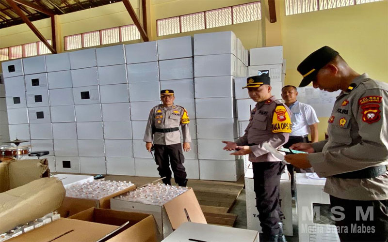 MajalahPerwira, Singkawang – Polres Singkawang, Waka Ops Res Kompol Indra Asrianto, S.I.K., M.A.P. bersama Pejabat Operasi Mantap Brata Kapuas 2023-2024 Polres Singkawang melakukan pengecekan gudang logistik KPU di Jalan P. Antasari Kel. Pasiran Kec. Singkawang Barat Kota Singkawang, Senin (4/12/2023).