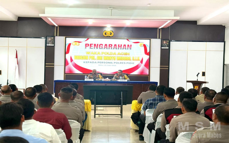 MediaSuaraMabes, Sigli – Wakapolda Aceh Brigjen Pol. Ari Wahyu Widodo, SIK, memberikan pengarahan langsung kepada personel Polres Pidie dalam kunjungan kerjanya, Selasa (22/7/2025). sore