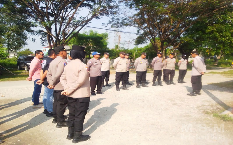 Jajaran Mapolsek Tarumajaya Menggelar Apel persiapan Pengamanan area proyek SUTT yang di pimpin oleh Kanit Binmas Aipda Sarif . SH dan dihadiri dari jajaran Polwan polres Bekasi