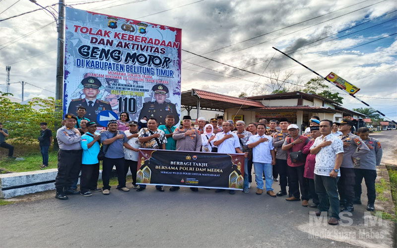 MajalahPerwira (Jaringan MSM), Babel – Sebagai wujud kepedulian Polri untuk masyarakat, Kapolres Belitung Timur (Beltim) AKBP Indra Feri Dalimunthe bersama jajarannya dan wartawan dari berbagai media massa se-Beltim, menggelar kegiatan sosial dengan membagikan takjil kepada pengendara yang melintas di depan Mapolres Beltim, Manggar, Kamis (13/3/2025).